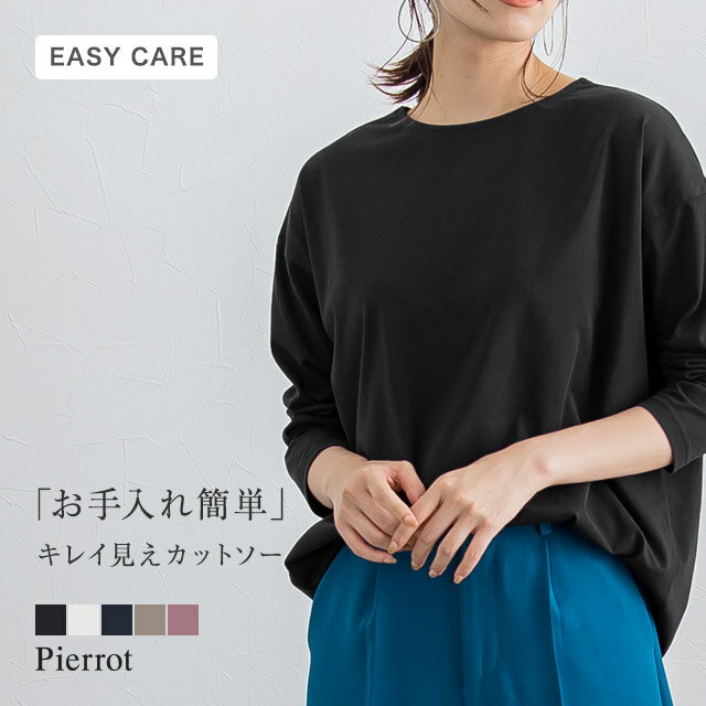 全品20%OFFクーポン!≪Easy care≫2wayロングスリーブTシャツ ☆ Tシャツ ロンT 2way カットソー イージーケア ゆったり Vネック きれいめ レディース pierrot ピエロ 【Pierrot】 23IN