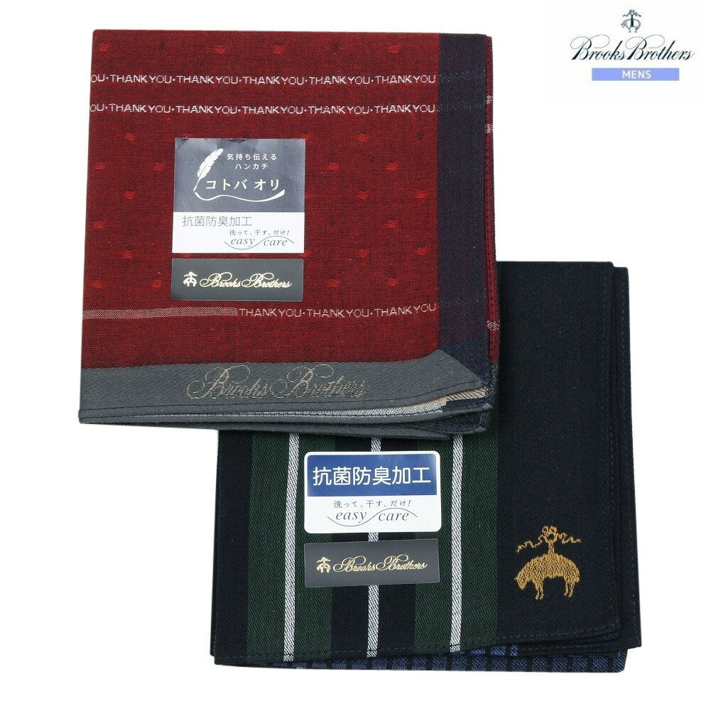 ブルックスブラザーズ ハンカチ 2枚セット Brooks Brothers メンズ ブランド ギフト プレゼント 日本製 EasyCare コトバオリ / ストライプ コットン ワイン×紺 24/7/2 110724【ネコポスで送料無料】
