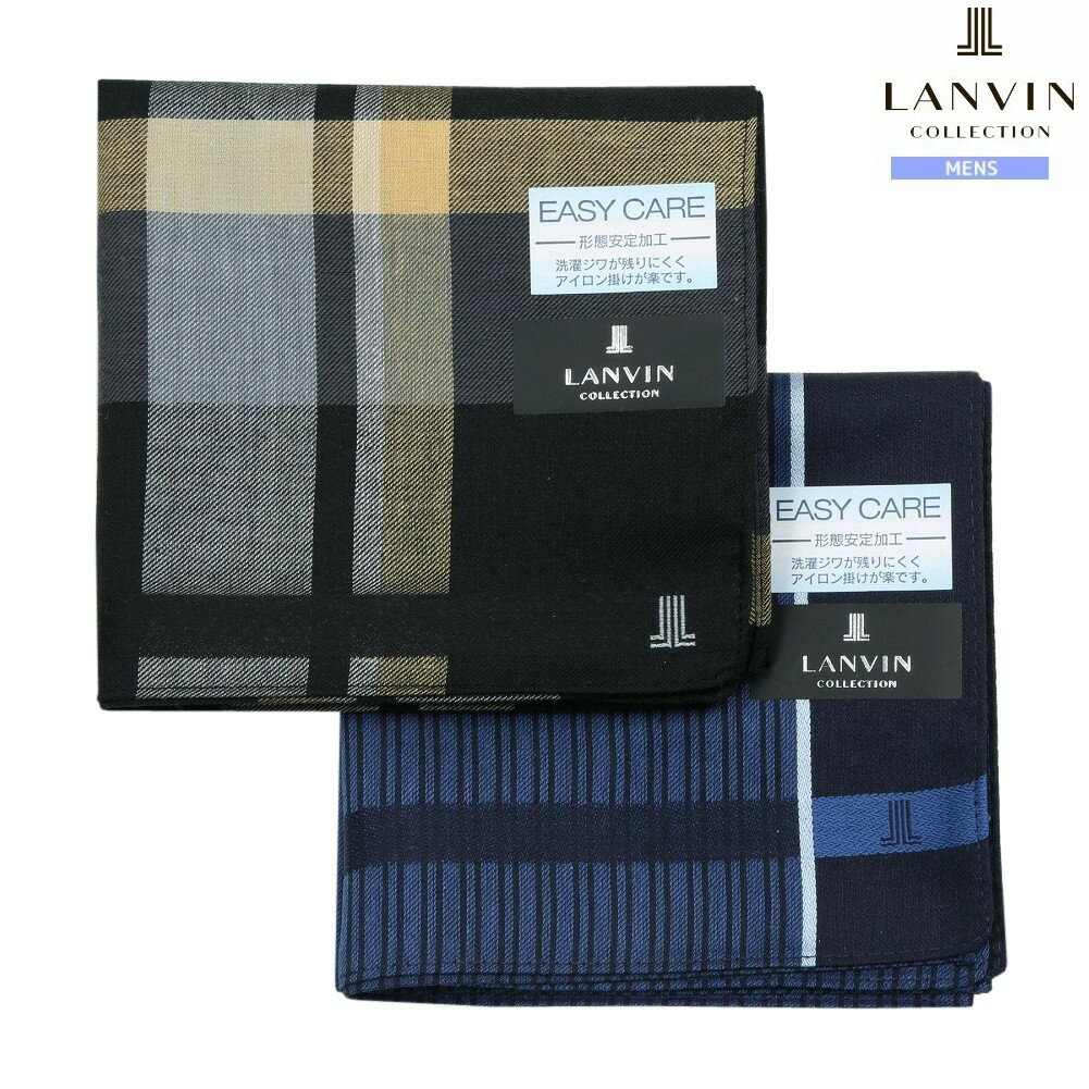 ランバン ハンカチ 2枚セット LANVIN COLLECTION メンズ ブランド ギフト プレゼント 日本製 EasyCare チェック コットン 青×黒 25/1/2 090125【ネコポスで送料無料】