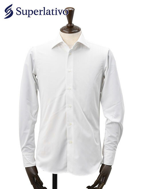 【ポイント10倍!要エントリー】スペルラティボ Superlativo ドレスシャツ メンズ ポリエステルピケ素材 EASY CARE ホワイト 白 レギュラーフィット 巻き伏せ本縫い 貝釦使用 微ストレッチ 日本製 でらでら 公式ブランド