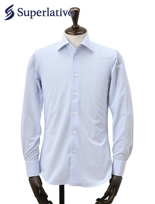 【ポイント10倍!要エントリー】スペルラティボ Superlativo ドレスシャツ メンズ ポリエステルピケ素材 EASY CARE サックスブルー レギュラーフィット 巻き伏せ本縫い 貝釦使用 微ストレッチ 日本製 でらでら 公式ブランド