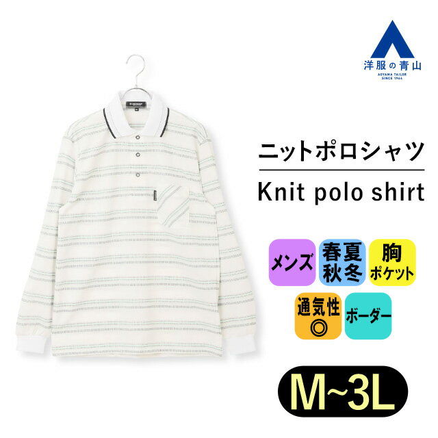 【洋服の青山】EASY CARE 簡単アイロン ニットポロシャツ ポロシャツ 長袖 メンズ オールシーズン ホワイト 白 ドット ボーダー ウォッシャブル 洗える ビズポロ トップス 普段着 春夏 秋冬 大人 40代 50代 60代 男性 おしゃれ ブランド ダンロップ DUNLOP 出雲のブランド