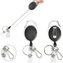 YOUOWO-吊り下げ名札用リール キーホルダー 伸びるストラップ リコイルリング カラビナ・クリップ付き 定期入れ・パスケース用 最長63cm IDカードホルダー用 黒 2個セット ブラックリールストラップ