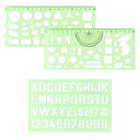 テンプレート 定規 描画 製図 図形 丸 まる 三角形 四角形 六角形 楕円 アルファベット 分度器 文房具 絵画 情報処理 プログラミング フローチャート 多機能 子供 小学生 文具 かわいい 見やすい