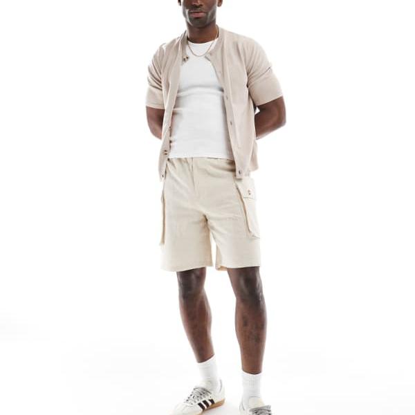 ネイティブユース Native Youth ネイティブユースのオーバーサイズカーゴリネンショーツ(クリーム色) パンツ ボトム メンズ 男性 インポートブランド 小さいサイズから大きいサイズまで