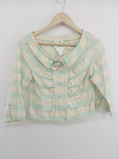 ◇ Yuge ユージュ シルク100% ボーダー 八分袖 ジャケット サイズ38 アイボリー系 グリーン系 レディース P 【中古】