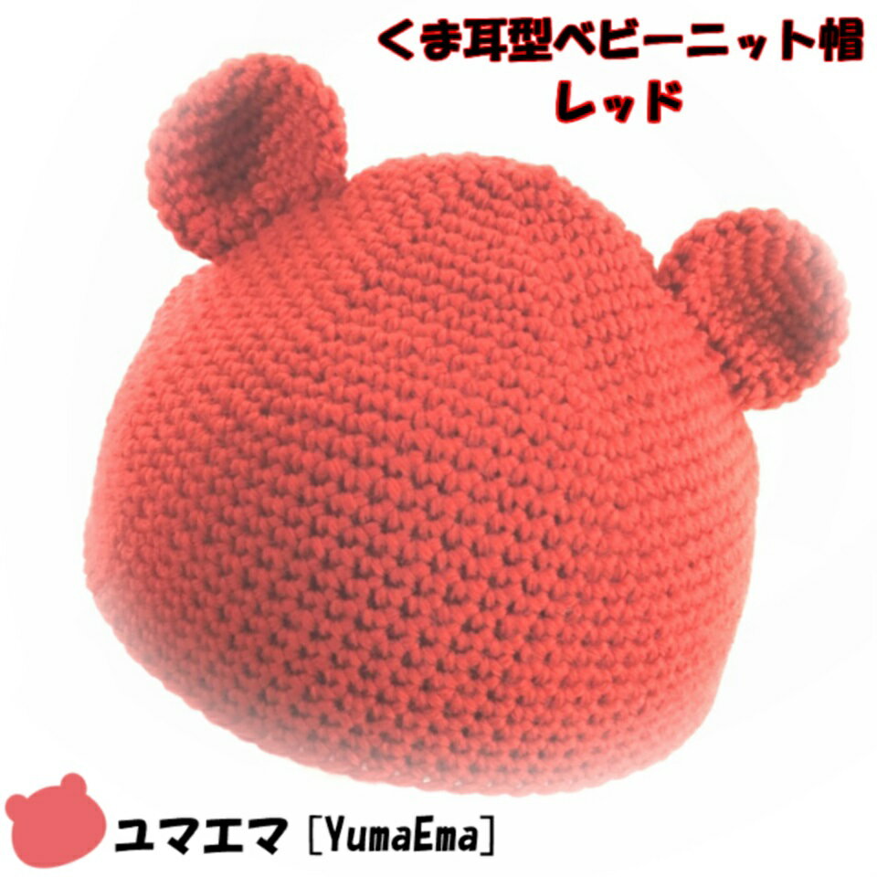 ユマエマ くま耳型ベビーニット帽子 【レッド】【生後3ヶ月〜6ヶ月サイズ】【頭回り42〜44cm】BABY帽子 手編み製 ハンドメイド おしゃれな男の子用 女の子用 男児女児ユニセックス向け ナカジャパンオリジナル品