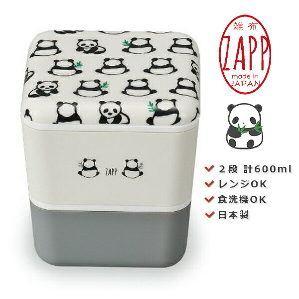【ZAPP スクエアネストランチ(パンダ)】 ZAPPは日本すぎないJAPANスタイル。 懐かしいのに新しい。 それがZAPPの可愛いところ。 ぱんだのパターンがかわいい、大人もお子様にも好評なデザイン。 飽きのこないグレーに無数のパンダが愛らしいお弁当箱です。 お友達やご家族へのプレゼントやギフトにいかがでしょうか。 ─┘─┘─┘─┘─┘─┘─┘─┘─┘─┘ 【商品詳細】 ■奥行 10×幅 10×高さ 11cm ■容量:下段 240ml、上段 360ml ■材質:(本体)PET,ABS、(蓋)PL、(シール蓋)ポリエチレン ■特徴: 電子レンジ 〇(上フタ・中フタは×) 1000w-700w 1分以内 600w-500w 2分以内 食洗機 〇(上フタ・中フタは×) 入れ子可能 バンド付属 ■日本製 ※在庫について この商品は当店別店舗でも販売しております。 在庫数の更新は随時行っておりますが、状況によっては商品が品切れとなることもございます。また商品取り寄せによりお届けまでにお時間をいただく場合もございます。 お客様には必ず連絡をいたしますが、万が一メーカーで品切れ等の理由により入荷予定がない、もしくは入荷が遅れる場合はキャンセルさせていただく場合もございますことをあらかじめご了承ください。 ─┘─┘─┘─┘─┘─┘─┘─┘─┘─┘