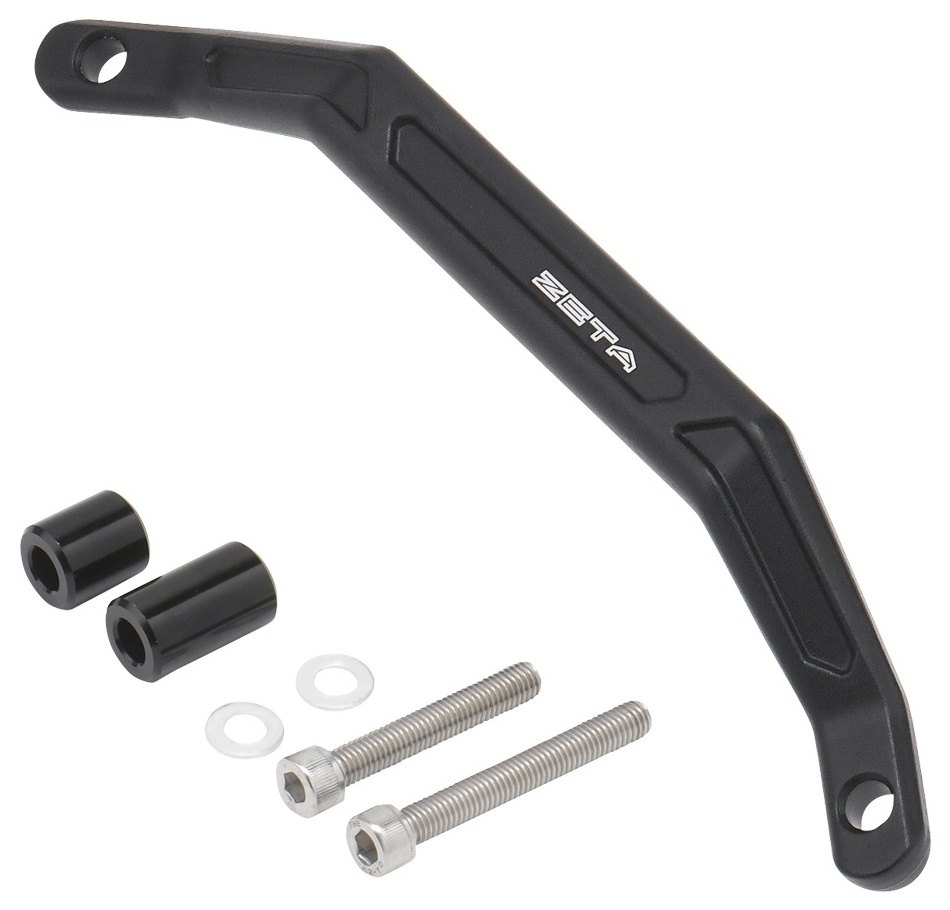 ■商品概要旧品番:ZE60-1000【タイプ】ハンドルブレースタイプ【カラー】ブラック【全長】258mm/244mm/230mm/216mm/202mm【直径】22.2mm【マウント可能範囲】212mm/198mm/184mm/170mm/156mm【重量】295g(全長258mm測定)【素材】クランプ:鍛造アルミ合金ブレースシャフト:アルミ合金【表面処理】ブラックアルマイト仕上げ■詳細説明アジャスタブル機構で様々なハンドルバーに対応。フルフラットデザインによりマウントスペースを最大限に利用できる。ブレースタイプのアジャスタブルマウントバー。スマホマウントホルダーやUSB電源などのモバイル機器をハンドルバーに複数取付けたい!を実現。専用スペーサーを利用することで5段階の長さ調整が可能。様々な形状のバーハンドルに対応。ブレースシャフトは直径22.2mmのフルフラットデザインでマウントスペースを最大限に利用できる。ハンドルバーブレースがないバーハンドル(22.2mm)に対応。高強度アルミ合金を採用。サンドブラスト処理、ブラックアルマイト仕上げ。■ブレースシャフト専用スペーサーを利用することで5段階の長さ調整が可能。様々な形状のバーハンドルに対応。ブレースシャフトは直径22.2mmのフルフラットデザインでマウントスペースを最大限に利用可能。ブレースシャフトの全長は5段階 258/244/230/216/202(mm)■樹脂カラー・ハーネスクリップクランプ部に樹脂カラーを装備しハンドルバーへのキズつきを防止する。ハーネスクリップは結束バンドを使うことなく配線をまとめられる。■注意点※メーカー都合により商品の仕様変更がある場合がございます。ご了承ください。※ハンドルバーの剛性をアップさせるブレース機能はありません。■適合車種CT125 CT125 備考: 汎用