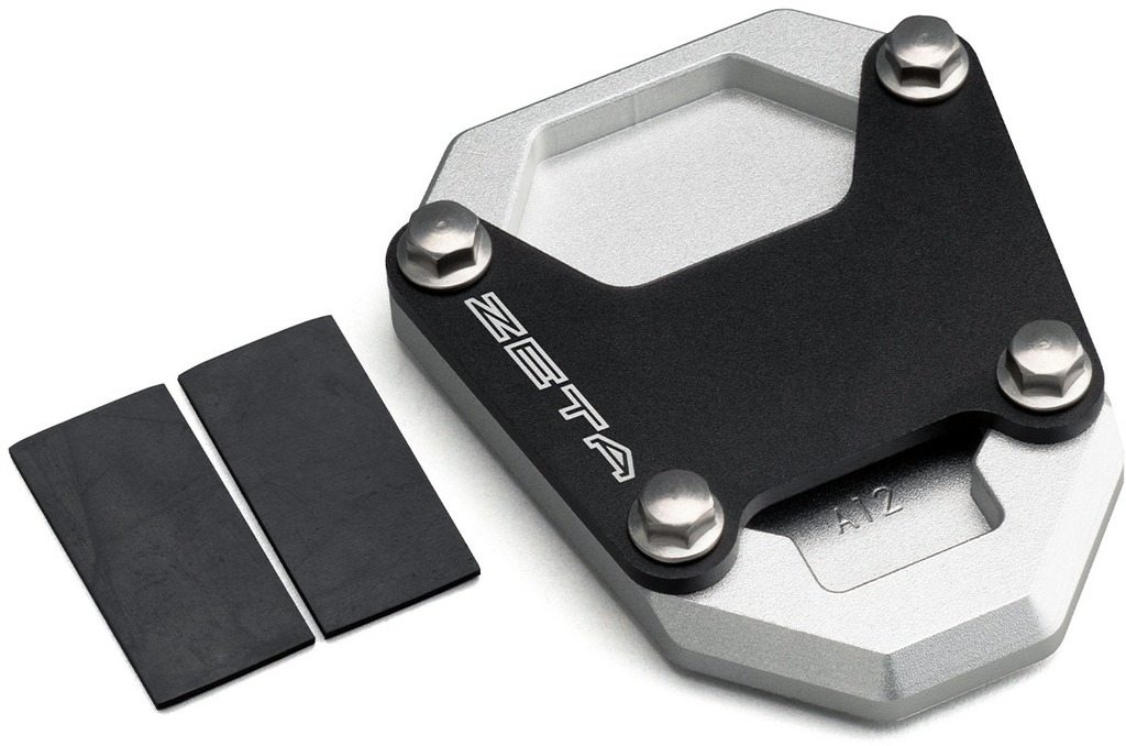 ■商品概要旧品番:ZE56-6010【カラー】上部プレート:ブラック下部プレート:シルバー【仕様】上部プレート:レーザーマーキング/アルマイト仕上げ下部プレート:サンドブラスト加工梨地仕上げ/アルマイト仕上げ【素材】上部プレート:A5052材下部プレート:A6061材固定ボルト/圧入ナット:ステンレス(SUS304)【付属品】ゴムシート■詳細説明純正サイドスタンドの接触面積を拡大するパーツ。砂地や砂利などのサイドスタンドが埋まり込んでしまう不安定な路面でも、安定した駐輪を可能にする。上部プレートはA5052材にブラックカラーアルマイト処理、レーザーマーキングによるZETAロゴを施す。下部プレートはA6061材を全面CNC加工し、サンドブラスト加工による梨地仕上げにシルバーカラーアルマイト処理を施す。固定ボルト、圧入ナットはステンレス製 (SUS304)のため、全ての天候下で耐久性を発揮。取付時のガタつきを防止するゴムシートを付属。■注意点※メーカー都合により商品の仕様変更がある場合がございます。ご了承ください。※DRC サイドスタンド クロスカブ110 +30mmロングには使用できません。■適合車種クロスカブ110 クロスカブ110 年式: 18-21 型式: JA45 備考: DRC サイドスタンド クロスカブ110+30mmロング装着車には使用できません。 クロスカブ110 年式: 22-24 型式: JA60 備考: DRC サイドスタンド クロスカブ110 +30mmロング装着車には使用できません。