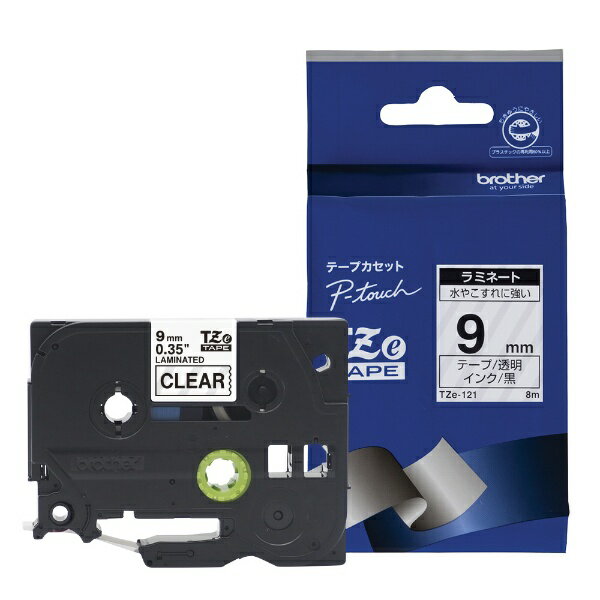 brother|ブラザー 【ブラザー純正】ピータッチ ラミネートテープ TZe-121 幅9mm (黒文字/透明) TZe TAPE 透明 TZe-121 [黒文字 /9mm幅][TZE121]