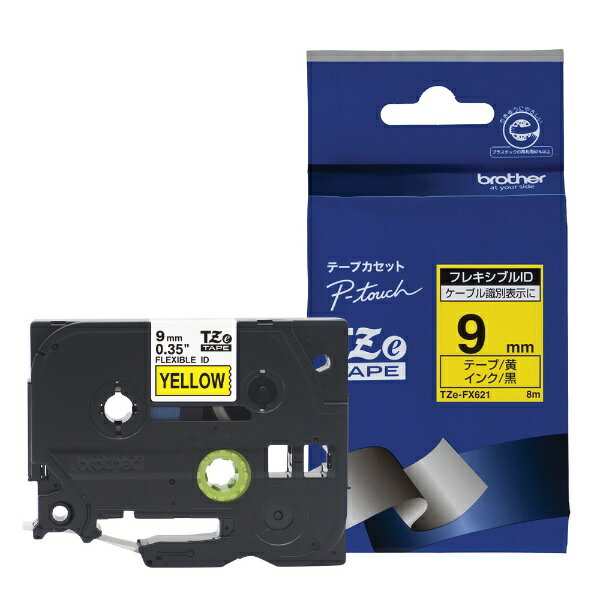brother|ブラザー 【ブラザー純正】ピータッチ ラミネートテープ TZe-FX621 幅9mm (黒文字/黄/フレキシブルID) TZe TAPE 黄 TZe-FX621 [黒文字 /9mm幅][TZEFX621]