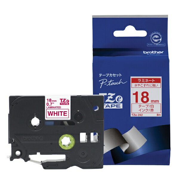 brother|ブラザー 【ブラザー純正】ピータッチ ラミネートテープ TZe-242 幅18mm (赤文字/白) TZe TAPE 白 TZe-242 [赤文字 /18mm幅][TZE242]