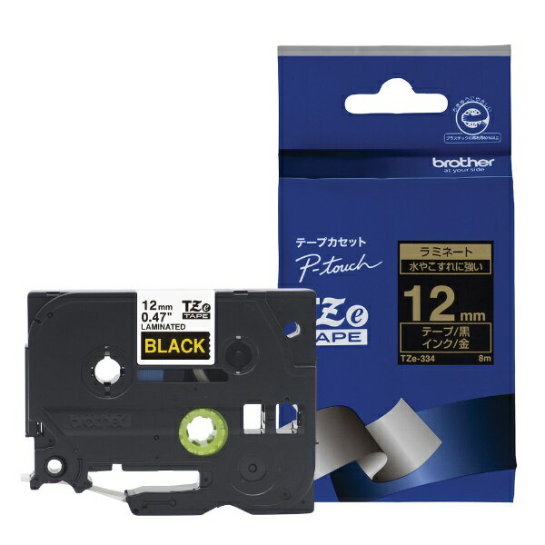 brother|ブラザー 【ブラザー純正】ピータッチ ラミネートテープ TZe-334 幅12mm (金文字/黒) TZe TAPE 黒 TZe-334 [金文字 /12mm幅][TZE334]
