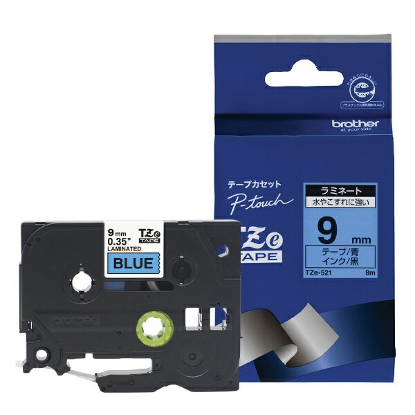 brother|ブラザー 【ブラザー純正】ピータッチ ラミネートテープ TZe-521 幅9mm (黒文字/青) TZe TAPE 青 TZe-521 [黒文字 /9mm幅][TZE521]