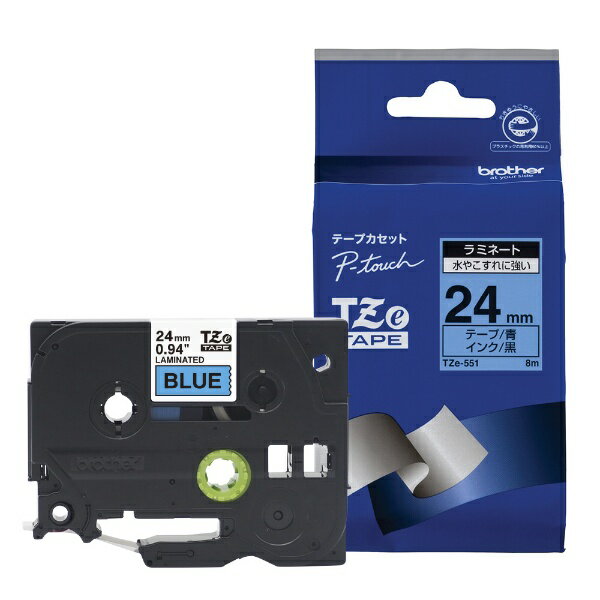 brother|ブラザー 【ブラザー純正】ピータッチ ラミネートテープ TZe-551 幅24mm (黒文字/青) TZe TAPE 青 TZe-551 [黒文字 /24mm幅][TZE551]