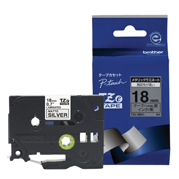 brother|ブラザー 【ブラザー純正】ピータッチ ラミネートテープ TZe-M941 幅18mm (黒文字/銀/つや消し) TZe TAPE 銀(つや消し) TZe-M941 [黒文字 /18mm幅][TZEM941]