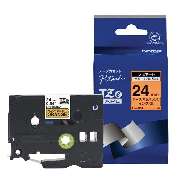 brother|ブラザー 【ブラザー純正】ピータッチ ラミネートテープ TZe-B51 幅24mm (黒文字/蛍光オレンジ) TZe TAPE 蛍光オレンジ TZe-B51 [黒文字 /24mm幅][TZEB51]