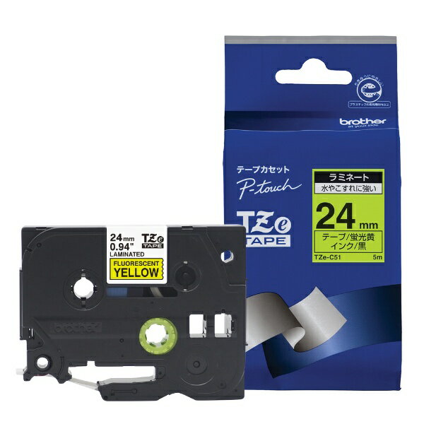 brother|ブラザー 【ブラザー純正】ピータッチ ラミネートテープ TZe-C51 幅24mm (黒文字/蛍光黄) TZe TAPE 蛍光黄 TZe-C51 [黒文字 /24mm幅][TZEC51]
