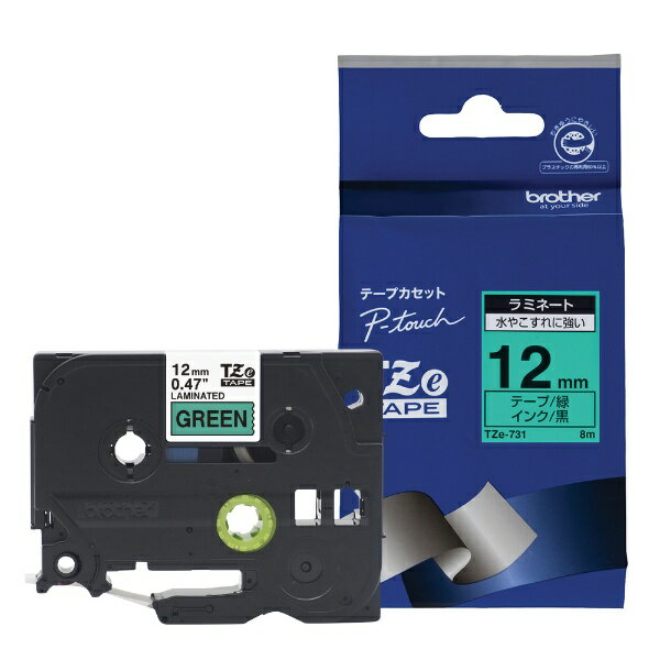 brother|ブラザー 【ブラザー純正】ピータッチ ラミネートテープ TZe-731 幅12mm (黒文字/緑) TZe TAPE 緑 TZe-731 [黒文字 /12mm幅][TZE731]
