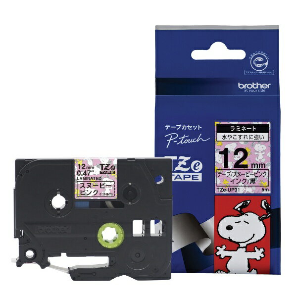 brother|ブラザー 【ブラザー純正】ピータッチ ラミネートテープ TZe-UP31 幅12mm (黒文字/スヌーピーピンク) TZe TAPE スヌーピーピンク TZe-UP31 [黒文字 /12mm幅][TZEUP31]