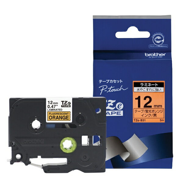 brother|ブラザー 【ブラザー純正】ピータッチ ラミネートテープ TZe-B31 幅12mm (黒文字/蛍光オレンジ) TZe TAPE 蛍光オレンジ TZe-B31 [黒文字 /12mm幅][TZEB31]