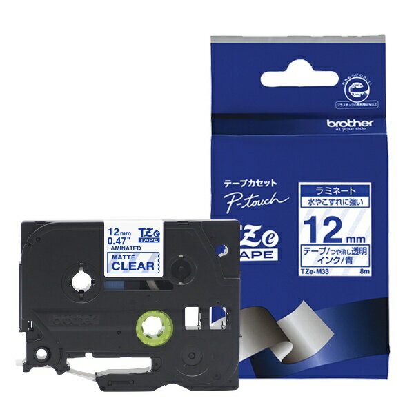 brother|ブラザー 【ブラザー純正】ピータッチ ラミネートテープ TZe-M33 幅12mm (青文字/透明/つや消し) TZe TAPE 透明(つや消し) TZe-M33 [青文字 /12mm幅][TZEM33]