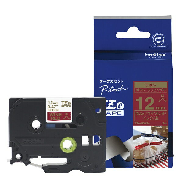 brother|ブラザー 【ブラザー純正】ピータッチ リボンテープ TZe-RW34 幅12mm (金文字/ワインレッド) TZe TAPE ワインレッド TZe-RW34 [金文字 /12mm幅]