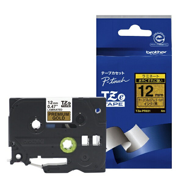 brother|ブラザー 【ブラザー純正】ピータッチ ラミネートテープ TZe-PR831 幅12mm (黒文字/プレミアムゴールド) TZe TAPE プレミアムゴールド TZe-PR831 [黒文字 /12mm幅]