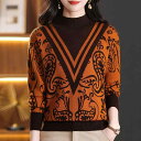 セーター ニット 中年 ママ 秋冬 ウール ジャカードセーター レディース ゆったり 大きめサイズ ハイネック ミセス向け 体型カバー おしゃれ カジュアル 上品 レジャー 休日 ママ友 デイリー