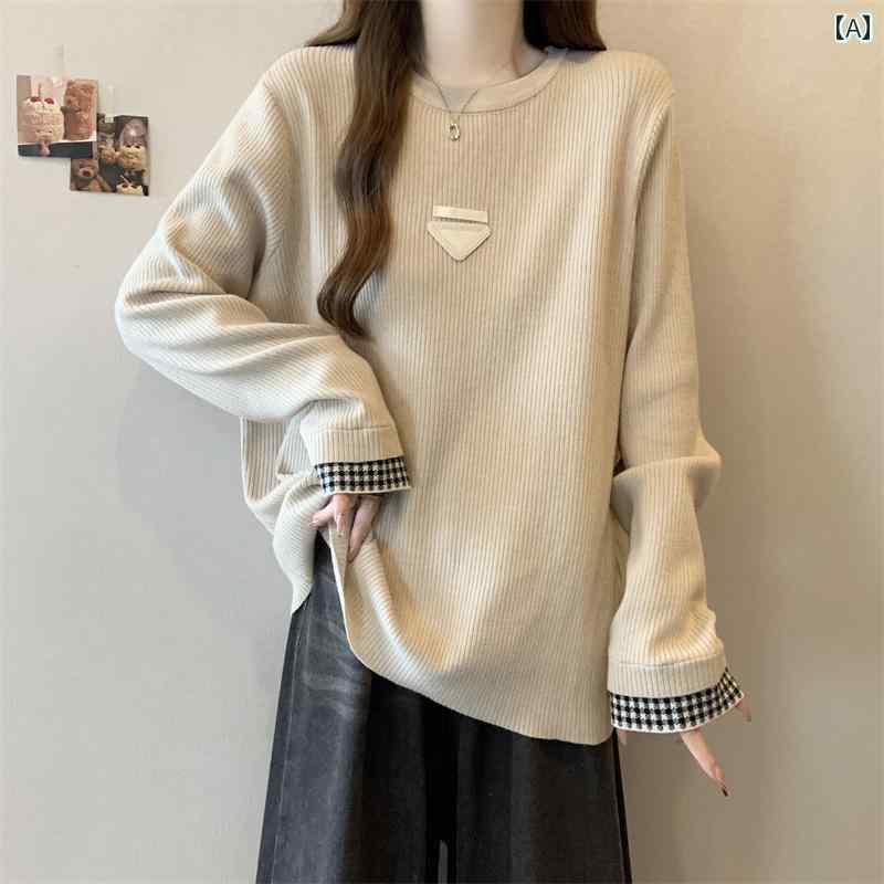 大きめサイズ レディース おしゃれ ファッション カジュアル デート 女子会 普段使い 体型カバー ゆったり 秋冬 コントラスト ニット セーター ぽっちゃり スリム ボトムインナー トップス