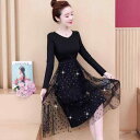 ・カテゴリ: ワンピース・スタイル: 都市カジュアル・主な素材: ポリエステル繊維・柄: ドット・ネックライン: Vネック・袖丈: 長袖・袖タイプ: レギュラー・ウエスト: ハイウエスト・スカート丈: ミディ丈・スカートシルエット: Aライン・: パッチワーク、切り替え、メッシュ・カラー展開: ブラック・サイズ展開: M, L, XL, 2XL, 3XL