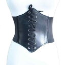 ベルト レディース 伸縮性 ウエストマーク コルセット カジュアル 普段使い フェイクレザー 合皮 ブラック ストラップ 編み上げ 面ファスナー ワイド 幅広 太め 飾りベルト(x2)