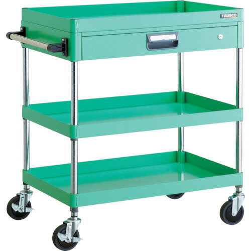 【特長】●抗菌粉体塗装ですので、長く清潔にお使いいただけます。(SIAA抗菌ISO22196:JP0122258A0002X)●深さ48mmの引出しが1段付いており、書類や小型工具の保管に適しています。●引出しには飛び出し防止のラッチ機能が付いています。●棚板は表・裏両面使え、ワンタッチブッシュの採用で組み立ても簡単です。●省音キャスターを使用した静かで滑らかな使い心地のパイプ式ワゴンです。【用途】●工場・倉庫・店舗等●工具や書類などの小物の収納・保管に。【仕様】●最大積載量(kg/台):150●均等積載量(kg/段):100●色:ヤンググリーン●間口(mm):600●奥行(mm):400●高さ(mm):740●段数(段):3●支柱径(mm):25.4●こぼれ止め高さ(mm):50●棚板調整ピッチ(mm):25●棚板調整ピッチ:25mm【仕様2】●引出し均等荷重:10kg●キャスター:自在式 100mm(2個) 自在式(ストッパー付) 100mm(2個)●棚板調整ピッチ:25mm●こぼれ止め高さ:50mm【材質/仕上】●本体:スチール(塗装部:抗菌粉体塗装)●キャスター金具:スチール●車輪:エラストマー(省音タイプ)【原産国】日本類似商品はこちらトラスコ TRUSCO PEW-763V-YG42,058円トラスコ TRUSCO PEW-661Z-YG33,140円トラスコ TRUSCO PEW-662Z-YG36,248円トラスコ TRUSCO PEW-962Z-YG38,418円トラスコ TRUSCO PEW-762Z-YG38,392円トラスコ TRUSCO PEW-963Z-YG41,522円トラスコ TRUSCO PEW-763X-YG50,417円トラスコ TRUSCO PEW-763-YG 25,559円トラスコ TRUSCO PEW-763VZ-Y58,620円トラスコ TRUSCO PEW-763Z-W 41,495円トラスコ TRUSCO PEW-763W-YG47,318円トラスコ TRUSCO PEW-763C-YG29,891円