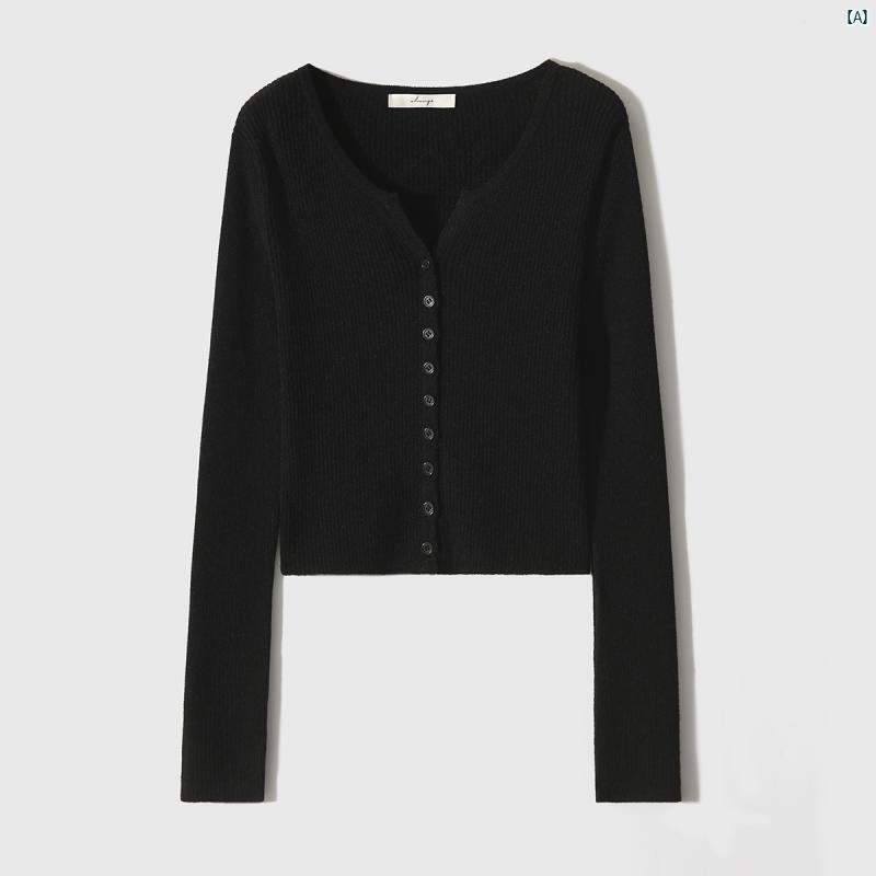 レディース ファッション コーデ 春 秋 スリム 長袖 Vネック 切り詰め ニットカーディガン ZYP 665850 AG