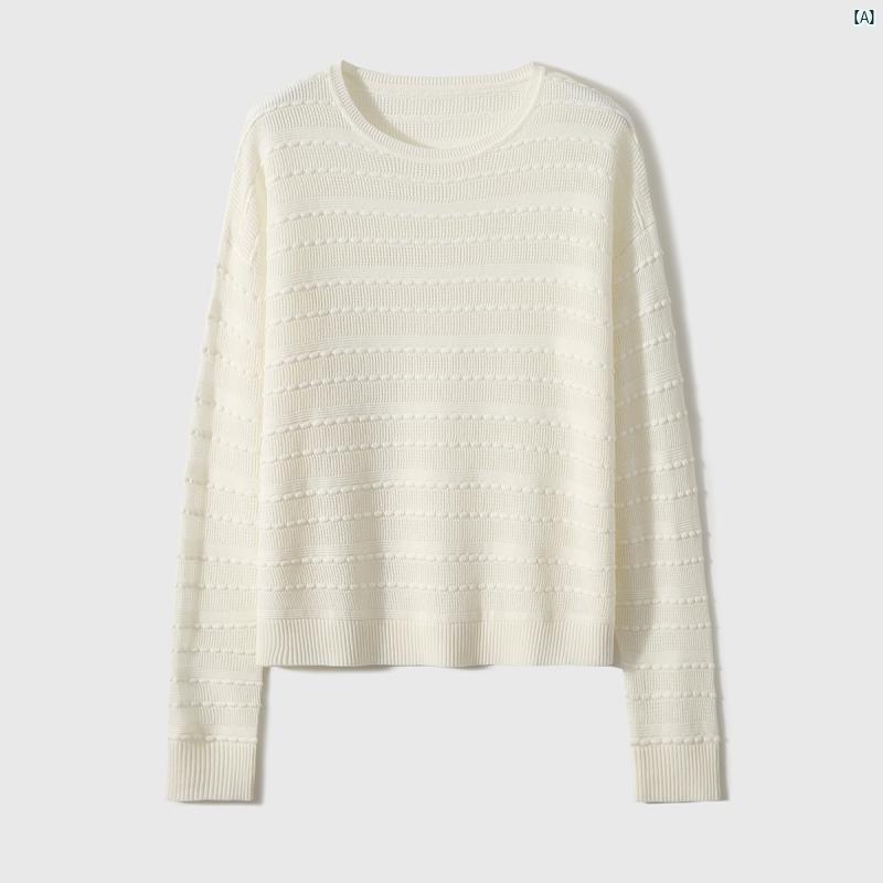 レディース ファッション コーデ 春 夏 秋 xiaohange 繊細 シンプル ミルク ホワイト ラウンドネック 長袖 ニットプルオーバー トップス ZYP 763279 AG