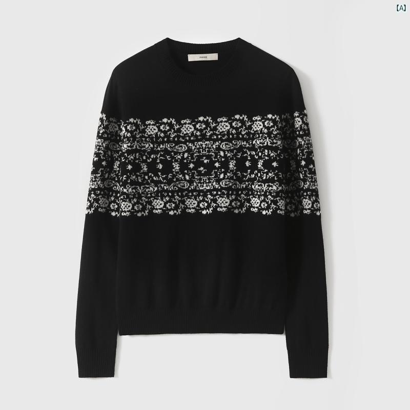 レディース ファッション コーデ 春 夏 秋 シャオ ハンゲ MORO ウール ホワイト ブラック ジャガード ラウンドネック 長袖 セーター ZYP 762294 AG