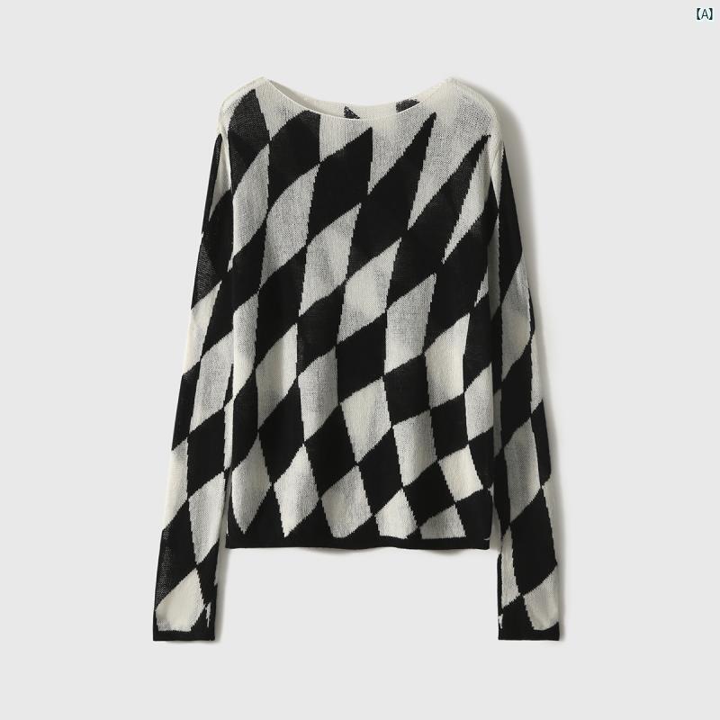 レディース ファッション コーデ 春 夏 秋 Xiaohange 初秋 ワード ネック ウール ひし形 柄 薄手 セーター ZYP 663338 AG