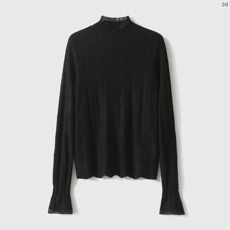 レディース ファッション コーデ 春 夏 秋 Xiaohange レース シャツ フレンチ ハーフ タートルネック 長袖 ニット インナーウェア レディース ZYP 761374 AG