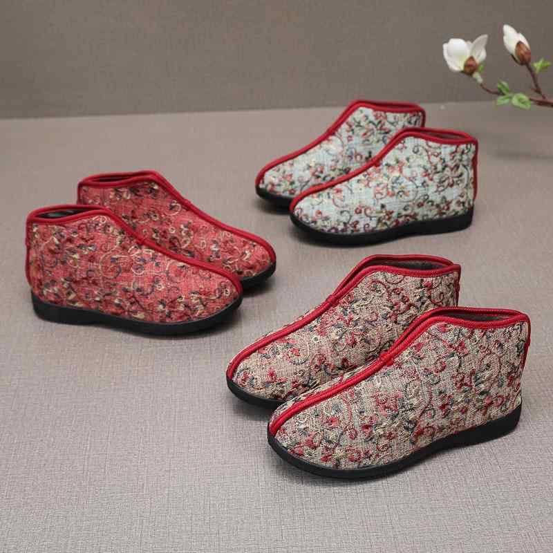 靴 レディース 婦人靴 高齢者 介護シューズ リハビリシューズ ルームシューズ スリッポン 刺繡 あたたかい 防寒 柔らかい 滑り止め 履きやすい 歩きやすい ローヒール ベージュ グレー レッド