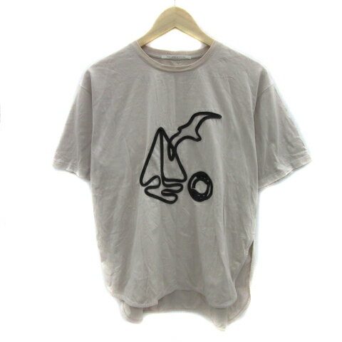 【中古】ザンパ ZAMPA style zampa for the holidays Tシャツ カットソー 半袖 ラウンドネック 刺繍 オーバーサイズ M ライトベージュ 黒 ブラック /YS11 レディース 【ベクトル 古着】 250715