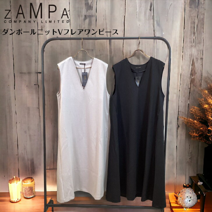 ZAMPA ザンパ ダンボールニットVフレアワンピース ブラック グレー
