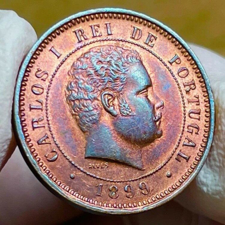 ???? 1899年 ポルトガル 5レイス ブロンズ WOW 素晴らしいパープルトーンのチョイス UNC