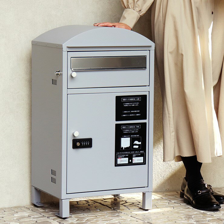 【商品説明】■郵便ポスト付宅配ボックス。1台の商品で、郵便ポストとしても、宅配ボックスとしても使用可能なアイテムです。■セキュリティ:上段は、プッシュキーで簡単に鍵の開閉が可能で、防犯面にも安心です。また、スペアキーが1本付属しております。下段は、ダイヤルロックとシリンダー錠(ダイヤル解錠番号が分からなくなった際の緊急用)でドアの開閉が可能です。■ゼロリターンキー:下段のダイヤルロックは、鍵を施錠した際、鍵を解錠した際にダイヤル番号が"0000"にリセットされ、設定したダイヤル番号の漏洩の心配がありません。■スリット窓付き:上段、下段ともに側面にスリット窓付きで、扉を開けなくても荷物の確認が可能です。■大きな郵便物も投函可能。上段の郵便投函口は、ゆうパケットポストや、ネコポスが投函可能です。■キー(上段用、下段用)、アンカーボルト、キーフック付印鑑ケース、宅配業者用の配達マニュアル(マグネット式でお好きな場所に貼付け可)が付属しており、お客様で追加でご用意頂くものは特になく、すぐにご使用頂けます。■カラーは、明るいグレーのクールグレーと、落ち着いた緑のフォレストグリーンの2色展開になります。投函口部はステンレス素材を使用したデザインになります。■ガルバナイズド処理を施しているため、錆びの発生がしにくい仕様となっております。■扉の取っ手はシルバーカラーの丸みのある取っ手を使用し、ワンポイントのデザインのアクセントとなっております。■印鑑ケースは2個付属しており、上段も宅配ボックスとしての使用も可能です。【商品スペック】■サイズ:W40×D35(取っ手込みサイズ)×H74(アジャスター込みサイズ)cm、上段 投函口:約W33.0×H3.5cm/取出口:約W33.5×D31.0×H12.4cm、下段 取出口:約W32.1×D31.0×H35.0cm■重量:12.5kg■材質:ステンレス(SUS430)、金属(鉄)・・・ガルバナイズド処理を施しています■塗装:粉体塗装■生産国:中国【備考・注意事項】※製造過程でステンレス投函口の裏側にキズや汚れが付いている場合がございます。不良品ではございませんので、あらかじめご了承ください。※こちらの商品は組立品となります。(本体完成品、脚・取っ手のみ取付)※防水塗装は施しておりません。軒下や屋根がある場所への設置を推奨致します。[ 関連キーワード | 宅配ボックス ポスト 宅配 置き配 配送 不在 郵便 新築 一戸建て 戸建て アパート マンション おしゃれ DIY シンプル おすすめ 便利 インテリア ]関連商品[10月エントリーでP10倍!] MOJYU 宅配ボックス付ポスト R...[10月エントリーでP10倍!] 宅配ボックス付ポスト Maisie ...[10月エントリーでP10倍!] 宅配ボックス付ポスト Jake ジェ...26,300円25,340円24,590円[10月エントリーでP10倍!] 宅配ボックス付ポスト Sara サー...[10月エントリーでP10倍!] 宅配ボックス付ポスト Gian ジャ...[10月エントリーでP10倍!] 宅配ボックス付ポスト Lauro ラ...26,760円26,180円24,670円[10月エントリーでP10倍!] 宅配ボックス付ポスト Marisa ...[10月エントリーでP10倍!] 宅配ボックス付ポスト Rufina ...[10月エントリーでP10倍!] 宅配ボックス付ポスト Bartolo...24,260円25,930円25,930円