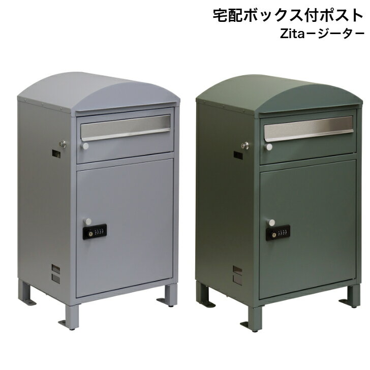 宅配ボックス付きポスト Zita ジータ PBX-081 PBX-082 幅40cm 奥行き35cm 高さ74cm アジャスター付き 印鑑ケース付き アンカーボルト付属 ポスト 郵便受け 宅配ボックス 玄関ボックス 玄関収納 グレー グリーン サビ止め 大容量 置き配 印鑑入れ スリム おしゃれ 北欧