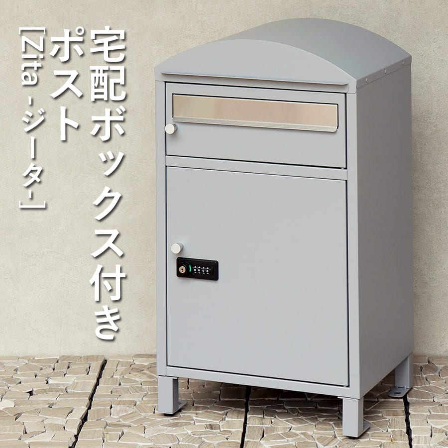 BLACKFRIDAY中店内商品P最大20倍【送料無料】宅配ボックス付ポスト Zita ジータ クールグレー おしゃれ 宅配ボックス 宅配BOX ポスト post 郵便受 カジュアル 鉄製 玄関 庭 MOJYU