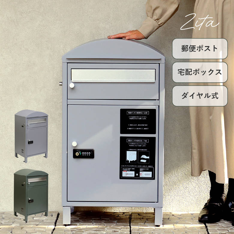【11/27まで最大P10倍】宅配ボックス 一戸建て用 ポスト 置き型 大型 大容量 郵便ポスト 置き型ポスト シリンダー錠 ダイヤル 戸建て 屋外 宅配BOX 郵便 置き配 PBX-081 PBX-082 Zita ジータ MOJYU グレー グリーン 新聞受け おしゃれ 玄関 シンプル モダン かわいい