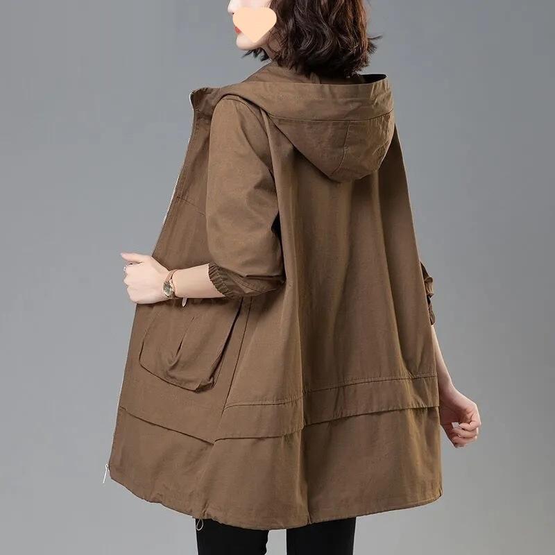 トレンチコート レディース 春秋 薄手 ミドル丈 ポリエステル アウター フード付き 長袖 カジュアル 通勤 ブラック レッド
