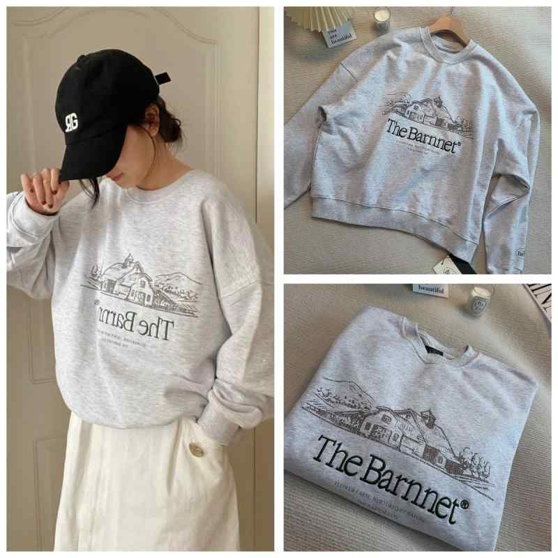 スウェット レディース 韓国風 ゆったり 長袖 厚手 コットン ラウンドネック カジュアル 秋冬 八奶房子印花