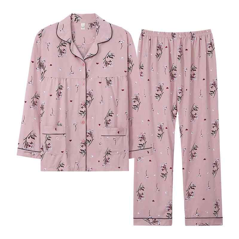 ルームウェア 部屋着 レディース 長袖 婦人 ミセス 高齢者 春秋 綿 パジャマ 大きめ サイズ カーディガン ピンク ブルー グレー